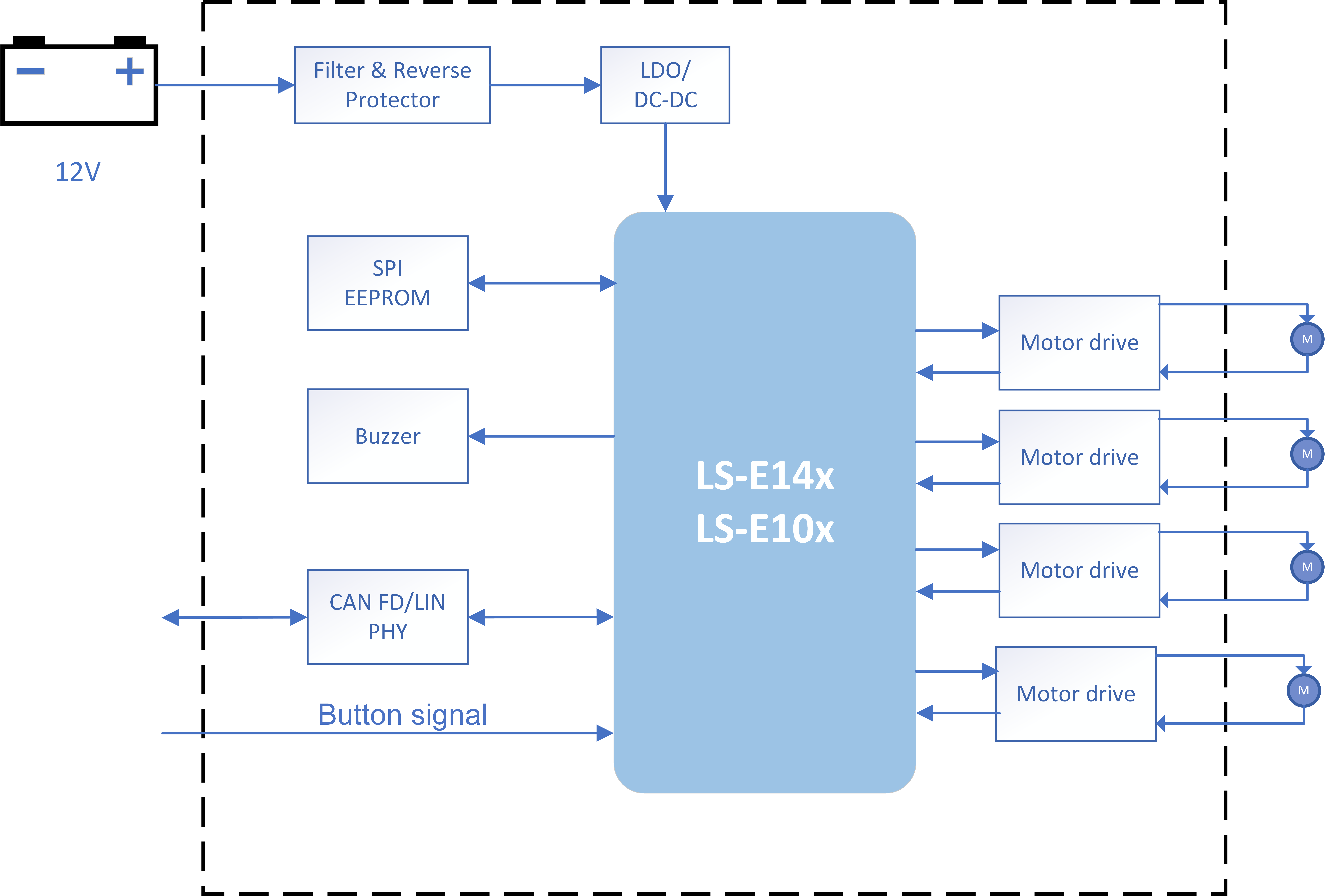 The Power Lift Gate Module (PLGM or RDM) is the core control unit in automotive electronic systems, dedicated to achieving functions such as electric opening and closing, intelligent anti pinch, and position memory of the tailgate, significantly improving the convenience and safety of driving. Lanshan provides high functional safety and high reliability LS-E14x and LS-E10x series chips, which can better support the application of PLGM.